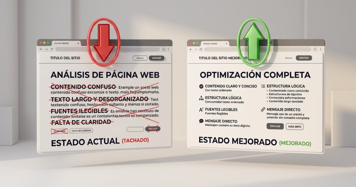 Hace poco atendimos a un cliente de marketing digital que vendía "plataformas de automatización multicanal con inteligencia artificial". Sus textos hablaban de "algoritmos de machine learning" y "APIs REST". Sus visitantes: pequeños negocios que querían enviar emails automáticos sin complicarse. Reescribimos sus textos en lenguaje simple, con párrafos cortos y ejemplos visuales. En dos meses, pasó de 0,5% de tasa de conversión a 2,25%. Los mismos visitantes, los mismos productos, pero textos claros.